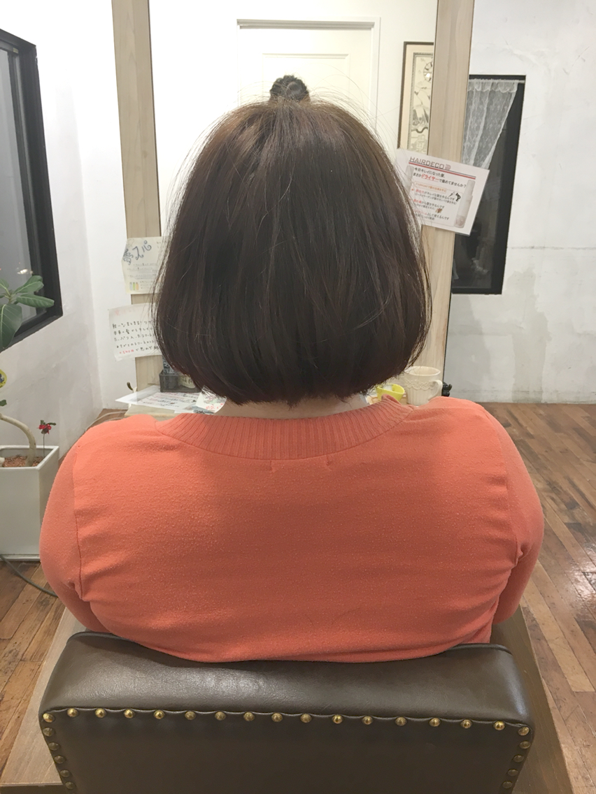 ショートスタイル > アジュテの日記 2018年05月17日 ばっさりカットしました! こんにちは!吉川郁です 先日ご来店のお客様もばっさりスタイルチェンジ 1年間伸ばし続けた髪の毛をばっさりボブに! 少しクセがある方だったので襟足は短くカットし癖で自然な丸みが出るようにしました 表面は少し軽く仕上げています 短くすると朝が大変と思われる方が多いのですが気をつけるのはドライヤーの当て方のみ 上から下向きに当ててみてください それだけでもまとまりが変わりますよー! Imprevu ajoute 「ショートスタイル」カテゴリの最新記事